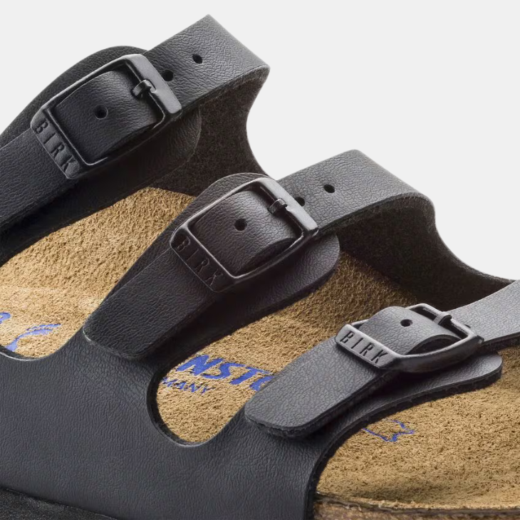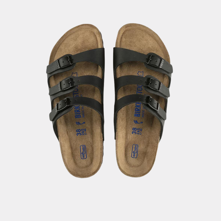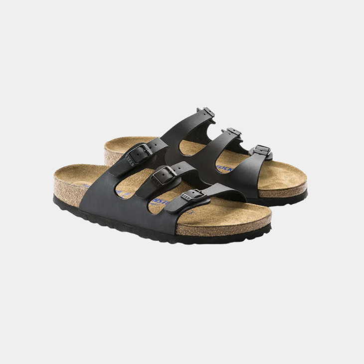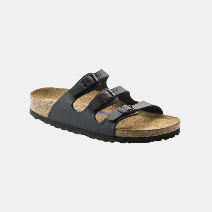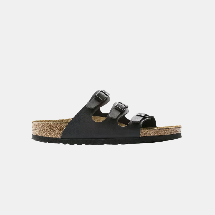 Sandale BIRKENSTOCK Florida BF noir pour femme : confort anatomique, maintien optimal avec 3 brides réglables, semelle liège/latex. Pointure habituelle recommandée.