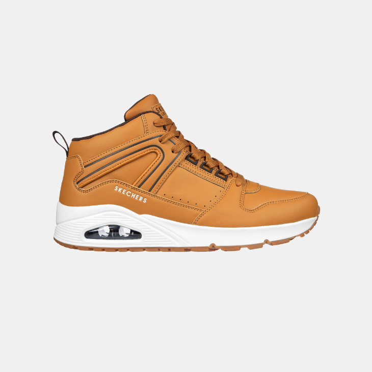 Adoptez un look moderne et affirmé avec les Skechers MID UNO Camel (réf. 232547-WSK). Ces baskets montantes pour homme offrent le parfait équilibre entre design tendance, confort haut de gamme et technologie innovante Skechers.